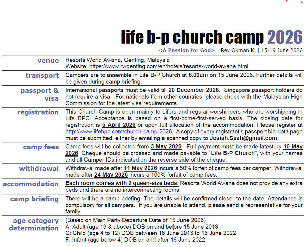 We thank God that Lifers are very generous in their offerings towards missions. In terms of support, the church gives priority to our fully-supported missionaries and we would like you to be aligned with the church’s position when giving towards missions. Rather than giving offerings that are designated to specific individuals or mission stations, you are encouraged to give to the Missions Fund and let the Missions Committee disburse them as it sees fit. Your understanding on this will facilitate an informed stewardship of resources for the Lord’s work in missions. If you wish to contribute financially to missionaries, please indicate "DO Missions" in the reference field in your e-Offering via the Life Church PayNow QR Code. May the Lord bless your cheerful giving.